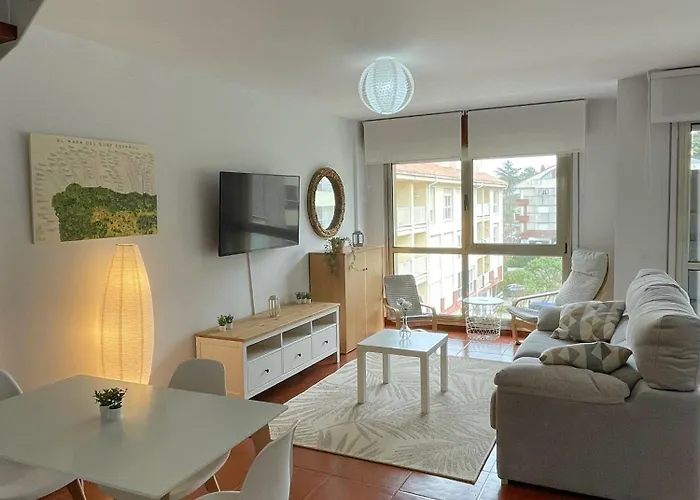 The spacious 2-bedroom Duplex 1Alinea Playa Incluye Parking Y Trastero Apartment San Vicente De La Barquera offers views of the mountain and a location approximately a 15-minute drive from Palacio de Sobrellano. The beachfront apartment features a terrace which opens out onto the sea.